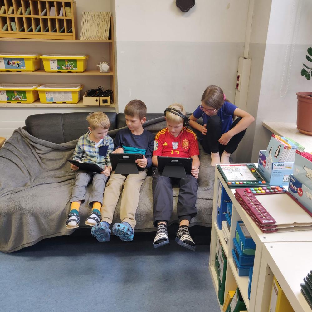 In der Pause von Bianca Hackl 02. Dezember 2024 Es wird mit Lego gebaut.Die Kinder zeigen sich gegenseitig den Umgang mit den Tablets.Die Kinder reparieren den Tisch.