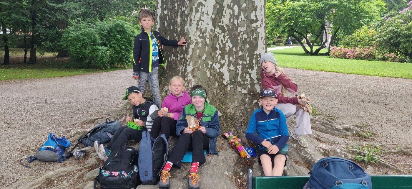 In der Früh fuhren wir gemeinsam mit der Volksschule Lermoos mit dem Bus nach Innsbruck. Dort angekommen machten wir das Gruppenfoto. Im Anschluss durften wir im Hofgarten jausnen und am Spielplatz spielen. Danach ging es weiter in die Hofburg. Dort erfuhren wir viel über die Geschichte Österreichs und wie die Menschen damals lebten. Maria Theresia hatte sogar 16 Kinder! Um unseren Hunger zu stillen, gingen wir ins Magic Kebap und aßen dort Pizzaschnitten und Döner. Die Pizzaschnitten waren riesig! Satt spazierten wir zum Volkskundemuseum, um die Maximilian Ralley zu starten. Wir wurden in Gruppen eingeteilt und machten uns mit Tablets auf den Weg. Im Wettlauf mit den anderen Gruppen mussten wir Aufgaben und Rätsel lösen. Elias, Leopold und Adrian haben den zweiten Platz gewonnen. Kaylee, Emma und Marly gewannen mit ihrem Team den dritten Platz. Spannend war die Fahrt mit der Hungerburgbahn zum Zoo. Die Abteile fuhren unterschiedlich hoch und wir konnten auf die anderen hinabsehen! Angekommen an der Station wanderten wir hoch zum Alpenzoo. Dort durften wir alleine die Gehege erkunden. Am tollsten fanden wir die Babytiere und den Fotoautomat. Als wir durch die Voliere mit den Greifvögeln gingen, hatten wir richtig Angst.