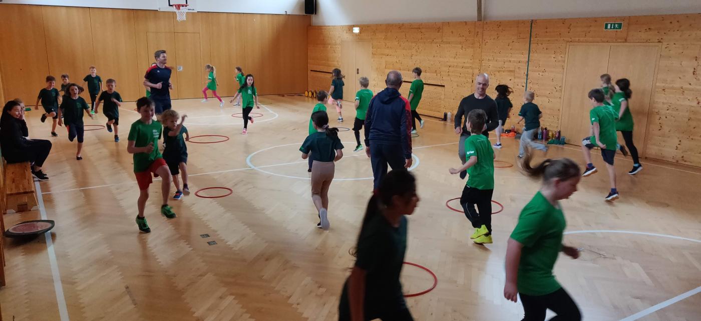 "In dem 3 Stunden dauernden Programm werden die Kinder in kleinere Gruppen aufgeteilt. Sie lernen mit viel Spaß neue Bewegungen und neue Sportarten kennen, können sich gegenseitig mit ihren koordinativen Fähigkeiten, dem Gleichgewicht und bei einem Sprungparcour matchen, sind Teil eines interaktiven und kindergerechten Workshop über gesunde und leckere Ernährung und erholen sich zwischendurch bei einer gesunden Jause." (Website Sporttag)