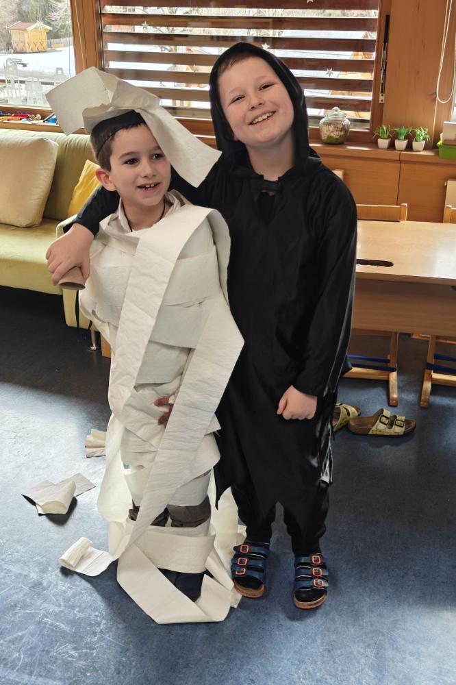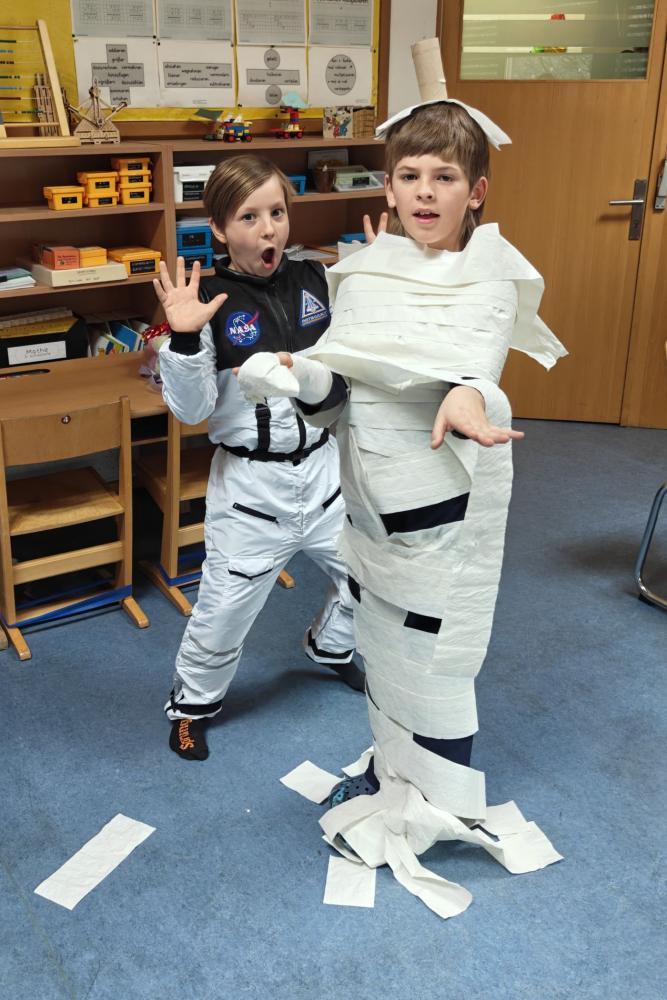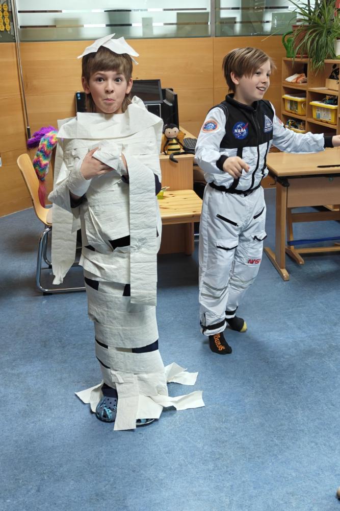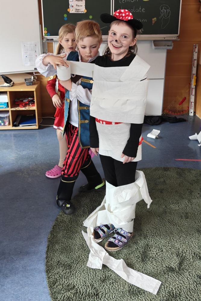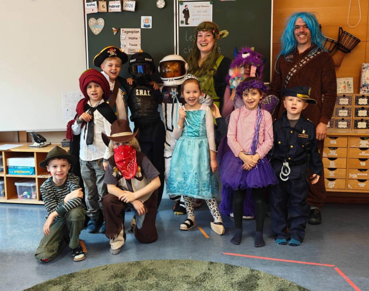 Vor den Semesterferien feierten wir unsere Faschingsparty. Alle Kinder und Lehrpersonen verkleideten sich und spielten gemeinsam lustige Spiele. Zur Jause gab es Faschingskrapfen.